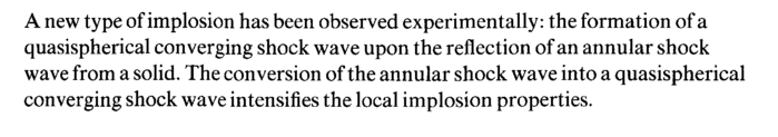 A new type of implosion has been observed experimentally: the formation of a quasispherical converging shock wave upon the reflection of an annular shock wave from a solid. The conversion of the annular shock wave into a quasispherical converging shock wave intensifies the local implosion properties.