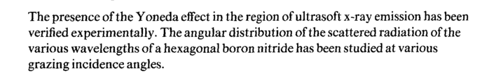 The presence of the Yoneda effect in the region of ultrasoft x-ray emission has been verified experimentally. The angular distribution of the scattered radiation of the various wavelengths of a hexagonal boron nitride has been studied at various grazing incidence angles.