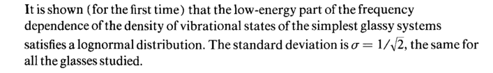It is shown (for the first time) that the low-energy part of the frequency dependence of the density of vibrational states of the simplest glassy systems satisfies a lognormal distribution. The standard deviation is σ = 1Д/2, the same for all the glasses studied.