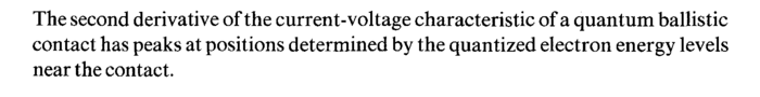 The second derivative of the current-voltage characteristic of a quantum ballistic contact has peaks at positions determined by the quantized electron energy levels near the contact.