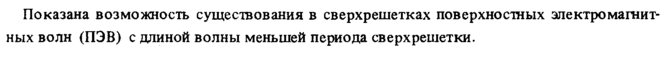 Показана возможность существования в сверхрешетках поверхностных электромагнитных волн (ПЭВ) с длиной волны меньшей периода сверхрешетки.