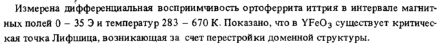 Измерена дифференциальная восприимчивость ортоферрита иттрия в интервале магнитных полей 0 35 Э и температур 283 670 К. Показано, что в УИеОз существует критическая точка Лифшица, возникающая за счет перестройки доменной структуры.
