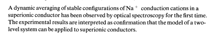 A dynamic averaging of stable configurations of Na + conduction cations in a superionic conductor has been observed by optical spectroscopy for the first time. The experimental results are interpreted as confirmation that the model of a two-level system can be applied to superionic conductors.