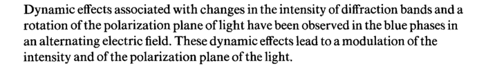 Dynamic effects associated with changes in the intensity of diffraction bands and a rotation of the polarization plane of light have been observed in the blue phases in an alternating electric field. These dynamic effects lead to a modulation of the intensity and of the polarization plane of the light.