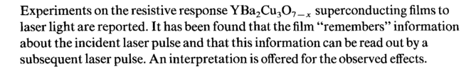 Experiments on the resistive response YBa2Cu307_x superconducting films to laser light are reported. It has been found that the film "remembers" information about the incident laser pulse and that this information can be read out by a subsequent laser pulse. An interpretation is offered for the observed effects.