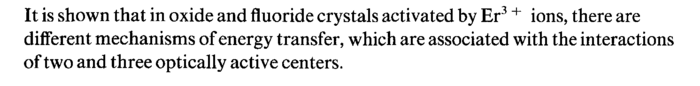 It is shown that in oxide and fluoride crystals activated by Er3 + ions, there are different mechanisms of energy transfer, which are associated with the interactions of two and three optically active centers.