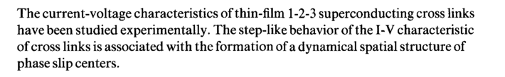 The current-voltage characteristics of thin-film 1-2-3 superconducting cross links have been studied experimentally. The step-like behavior of the I-V characteristic of cross links is associated with the formation of a dynamical spatial structure of phase slip centers.