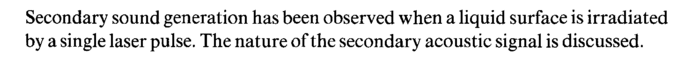 Secondary sound generation has been observed when a liquid surface is irradiated by a single laser pulse. The nature of the secondary acoustic signal is discussed.