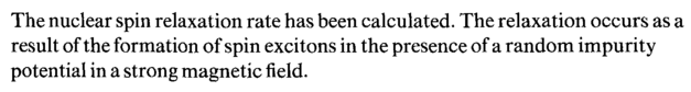 The nuclear spin relaxation rate has been calculated. The relaxation occurs as a result of the formation of spin excitons in the presence of a random impurity potential in a strong magnetic field.