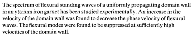 The spectrum of flexural standing waves of a uniformly propagating domain wall in an yttrium iron garnet has been studied experimentally. An increase in the velocity of the domain wall was found to decrease the phase velocity of flexural waves. The flexural modes were found to be suppressed at sufficiently high velocities of the domain wall.