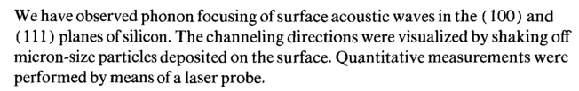 We have observed phonon focusing of surface acoustic waves in the (100) and (111) planes of silicon. The channeling directions were visualized by shaking off micron-size particles deposited on the surface. Quantitative measurements were performed by means of a laser probe.