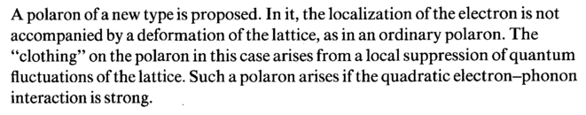 A polaron of a new type is proposed. In it, the localization of the electron is not accompanied by a deformation of the lattice, as in an ordinary polaron. The "clothing" on the polaron in this case arises from a local suppression of quantum fluctuations of the lattice. Such a polaron arises if the quadratic electron-phonon interaction is strong.