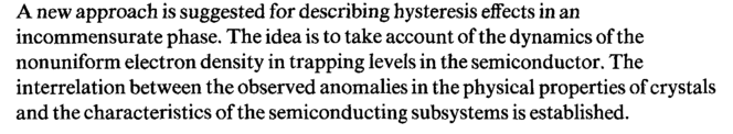 A new approach is suggested for describing hysteresis eiFects in an incommensurate phase. The idea is to take account of the dynamics of the nonuniform electron density in trapping levels in the semiconductor. The interrelation between the observed anomalies in the physical properties of crystals and the characteristics of the semiconducting subsystems is established.