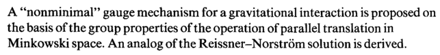 A "nonminimal" gauge mechanism for a gravitational interaction is proposed on the basis of the group properties of the operation of parallel translation in Minkowski space. An analog of the Reissner-Norstrom solution is derived.