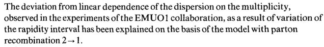 The deviation from linear dependence of the dispersion on the multiplicity, observed in the experiments of the EMUO1 collaboration, as a result of variation of the rapidity interval has been explained on the basis of the model with parton recombination 2 -> 1.