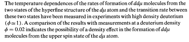 The temperature dependences of the rates of formation of άάμ molecules from the two states of the hyperfine structure of the άμ atom and the transition rate between these two states have been measured in experiments with high density deuterium (φ 1). A comparison of the results with measurements at a deuterium density φ = 0.02 indicates the possibility of a density effect in the formation of άάμ molecules from the upper spin state of the άμ atom.