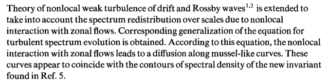 Theory of nonlocal weak turbulence of drift and Rossby waves1,2 is extended to take into account the spectrum redistribution over scales due to nonlocal interaction with zonal flows. Corresponding generalization of the equation for turbulent spectrum evolution is obtained. According to this equation, the nonlocal interaction with zonal flows leads to a diffusion along mussel-like curves. These curves appear to coincide with the contours of spectral density of the new invariant found in Ref. 5.