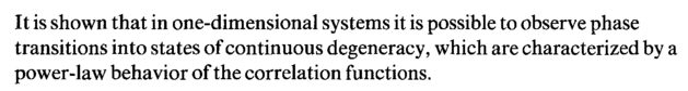 It is shown that in one-dimensional systems it is possible to observe phase transitions into states of continuous degeneracy, which are characterized by a power-law behavior of the correlation functions.