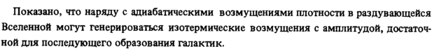 Показано, что наряду с адиабатическими возмущениями плотности в раздувающейся Вселенной могут генерироваться изотермические возмущения с амплитудой, достаточной для последующего образования галактик.
