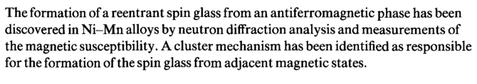 The formation of a reentrant spin glass from an antiferromagnetic phase has been discovered in Ni-Mn alloys by neutron diffraction analysis and measurements of the magnetic susceptibility. A cluster mechanism has been identified as responsible for the formation of the spin glass from adjacent magnetic states.