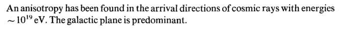 An anisotropy has been found in the arrival directions of cosmic rays with energies ~ 10