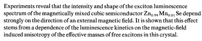 Experiments reveal that the intensity and shape of the exciton luminescence spectrum of the magnetically mixed cubic semiconductor Zn0 99 Mn0 01 Se depend strongly on the direction of an external magnetic field. It is shown that this effect stems from a dependence of the luminescence kinetics on the magnetic-field induced anisotropy of the effective masses of free excitons in this crystal.