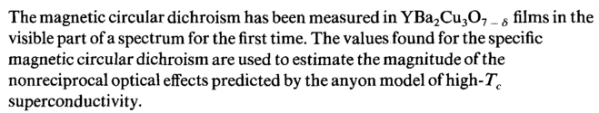 The magnetic circular dichroism has been measured in YBa2Cu307 _ δ films in the visible part of a spectrum for the first time. The values found for the specific magnetic circular dichroism are used to estimate the magnitude of the nonreciprocal optical effects predicted by the any on model of high-Tc superconductivity.