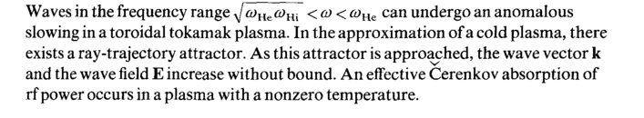 Waves in the frequency range ^%e6)Hi < ω < 6>He can undergo an anomalous slowing in a toroidal tokamak plasma. In the approximation of a cold plasma, there exists a ray-trajectory attractor. As this attractor is approached, the wave vector к and the wave field Ε increase without bound. An effective Cerenkov absorption of rf power occurs in a plasma with a nonzero temperature.