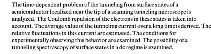 The time-dependent problem of the tunneling from surface states of a semiconductor localized near the tip of a scanning tunneling microscope is analyzed. The Coulomb repulsion of the electrons in these states is taken into account. The average value of the tunneling current over a long time is derived. The relative fluctuations in this current are estimated. The conditions for experimentally observing this behavior are examined. The possibility of a tunneling spectroscopy of surface states in a dc regime is examined.