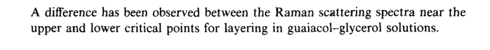 A difference has been observed between the Raman scattering spectra near the upper and lower critical points for layering in guaiacol-glycerol solutions.