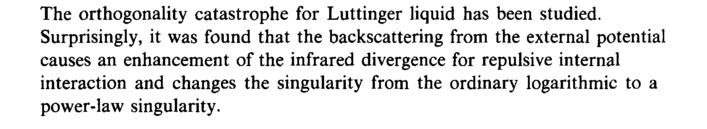 The orthogonality catastrophe for Luttinger liquid has been studied. Surprisingly, it was found that the backscattering from the external potential causes an enhancement of the infrared divergence for repulsive internal interaction and changes the singularity from the ordinary logarithmic to a power-law singularity.