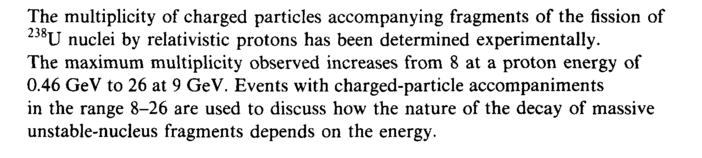 The multiplicity of charged particles accompanying fragments of the fission of U nuclei by relativistic protons has been determined experimentally. The maximum multiplicity observed increases from 8 at a proton energy of 0.46 GeV to 26 at 9 GeV. Events with charged-particle accompaniments in the range 8-26 are used to discuss how the nature of the decay of massive unstable-nucleus fragments depends on the energy.