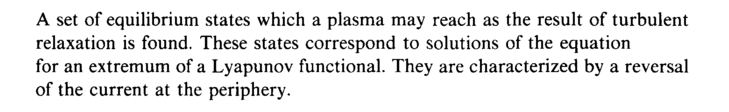 A set of equilibrium states which a plasma may reach as the result of turbulent relaxation is found. These states correspond to solutions of the equation for an extremum of a Lyapunov functional. They are characterized by a reversal of the current at the periphery.