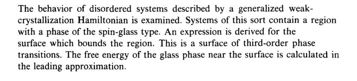 The behavior of disordered systems described by a generalized weak-crystallization Hamiltonian is examined. Systems of this sort contain a region with a phase of the spin-glass type. An expression is derived for the surface which bounds the region. This is a surface of third-order phase transitions. The free energy of the glass phase near the surface is calculated in the leading approximation.