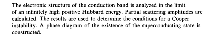 The electronic structure of the conduction band is analyzed in the limit of an infinitely high positive Hubbard energy. Partial scattering amplitudes are calculated. The results are used to determine the conditions for a Cooper instability. A phase diagram of the existence of the superconducting state is constructed.