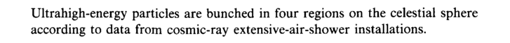Ultrahigh-energy particles are bunched in four regions on the celestial sphere according to data from cosmic-ray extensive-air-shower installations.