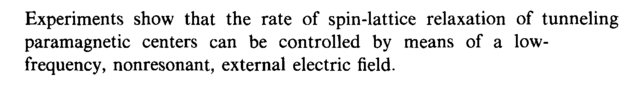 Experiments show that the rate of spin-lattice relaxation of tunneling paramagnetic centers can be controlled by means of a low-frequency, nonresonant, external electric field.