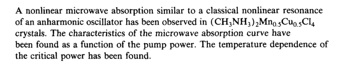 A nonlinear microwave absorption similar to a classical nonlinear resonance of an anharmonic oscillator has been observed in (óî3íîÚ)2íÐ0,5Cu0 5C14 crystals. The characteristics of the microwave absorption curve have been found as a function of the pump power. The temperature dependence of the critical power has been found.