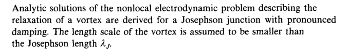 Analytic solutions of the nonlocal electrodynamic problem describing the relaxation of a vortex are derived for a Josephson junction with pronounced damping. The length scale of the vortex is assumed to be smaller than the Josephson length λj.