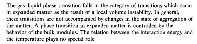 The gas-liquid phase transition falls in the category of transitions which occur in expanded matter as the result of a local volume instability. In general, these transitions are not accompanied by changes in the state of aggregation of the matter. A phase transition in expanded matter is controlled by the behavior of the bulk modulus. The relation between the interaction energy and the temperature plays no special role.