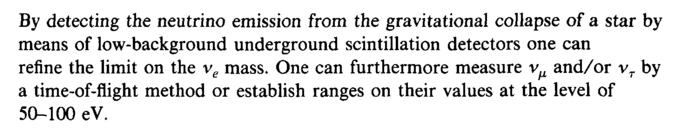 By detecting the neutrino emission from the gravitational collapse of a star by means of low-background underground scintillation detectors one can refine the limit on the ve mass. One can furthermore measure νμ and/or vT by a time-of-flight method or establish ranges on their values at the level of 50-100 eV.
