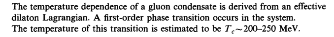 The temperature dependence of a gluon condensate is derived from an effective dilaton Lagrangian. A first-order phase transition occurs in the system. The temperature of this transition is estimated to be Tc~200-250 MeV.