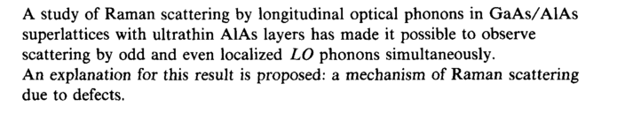 A study of Raman scattering by longitudinal optical phonons in GaAs/AlAs superlattices with ultrathin AlAs layers has made it possible to observe scattering by odd and even localized LO phonons simultaneously. An explanation for this result is proposed: a mechanism of Raman scattering due to defects.