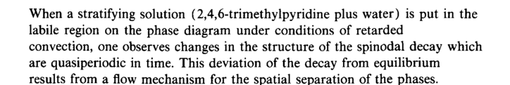 When a stratifying solution (2,4,6-trimethylpyridine plus water) is put in the labile region on the phase diagram under conditions of retarded convection, one observes changes in the structure of the spinodal decay which are quasiperiodic in time. This deviation of the decay from equilibrium results from a flow mechanism for the spatial separation of the phases.
