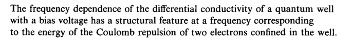 The frequency dependence of the differential conductivity of a quantum well with a bias voltage has a structural feature at a frequency corresponding to the energy of the Coulomb repulsion of two electrons confined in the well.