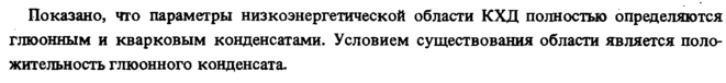 Показано, что параметры низкоэнергетической области КХД полностью определяются глюонным и кварковым конденсатами. Условием существования области является положительность глюонного конденсата.