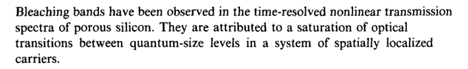 Bleaching bands have been observed in the time-resolved nonlinear transmission spectra of porous silicon. They are attributed to a saturation of optical transitions between quantum-size levels in a system of spatially localized carriers.