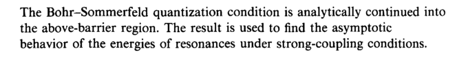 The Bohr-Sommerfeld quantization condition is analytically continued into the above-barrier region. The result is used to find the asymptotic behavior of the energies of resonances under strong-coupling conditions.