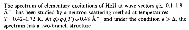 The spectrum of elementary excitations of Hell at wave vectors q~ 0.1-1.9 A-1 has been studied by a neutron-scattering method at temperatures Γ=0.42-1.72 K. At q>q0(T)~0A& A"1 and under the condition e > Δ, the spectrum has a two-branch structure.