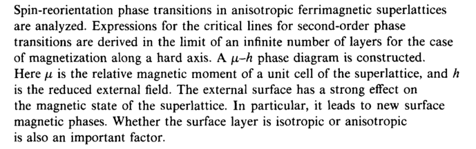 Spin-reorientation phase transitions in anisotropic ferrimagnetic superlattices are analyzed. Expressions for the critical lines for second-order phase transitions are derived in the limit of an infinite number of layers for the case of magnetization along a hard axis. A μ-h phase diagram is constructed. Here μ is the relative magnetic moment of a unit cell of the superlattice, and h is the reduced external field. The external surface has a strong effect on the magnetic state of the superlattice. In particular, it leads to new surface magnetic phases. Whether the surface layer is isotropic or anisotropic is also an important factor.